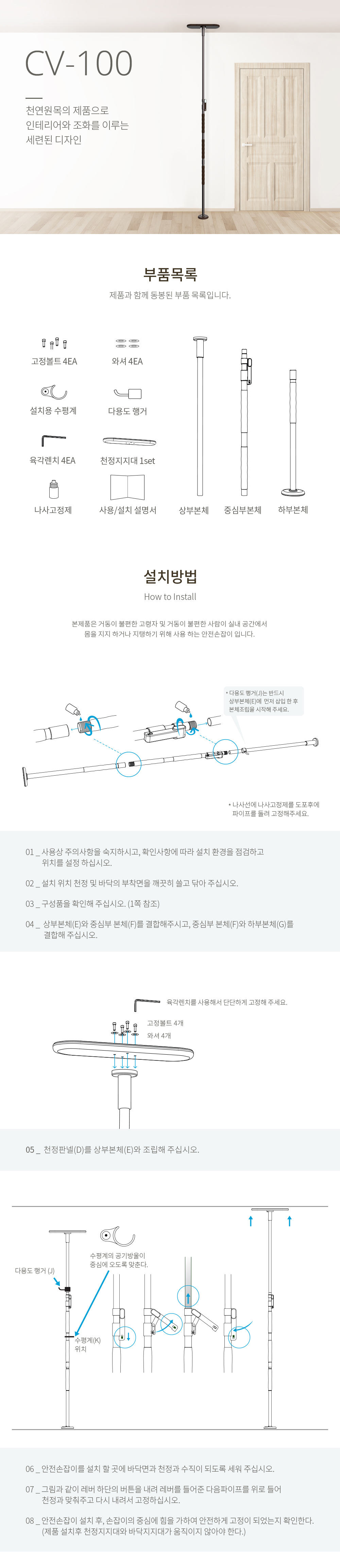 > 노인 무타공 기둥형 안전손잡이 안전바 CV100